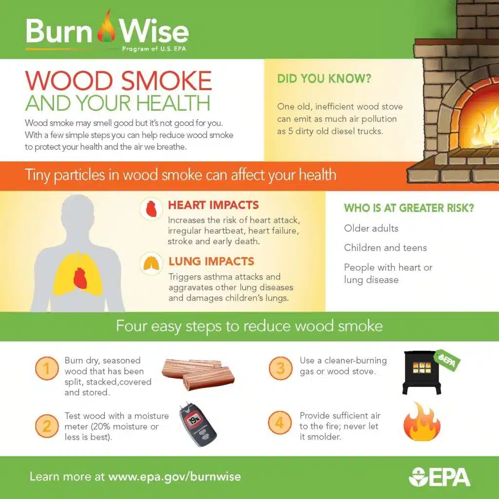 The problem is that the smoke created when burning wood can contain particulate matter 2.5 micrometers in diameter — 30x smaller than the diameter of a human hair. These particles get caught in the lungs of anyone breathing this smoke, triggering breathing difficulties and asthma attacks.