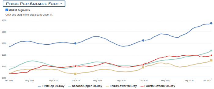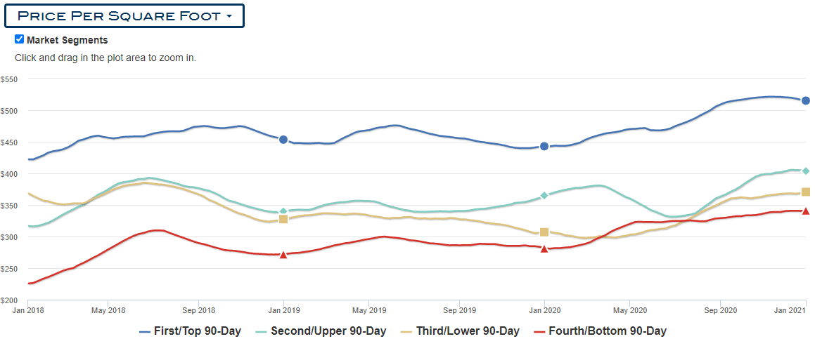 Price Per Sq. Ft. Chart for all Four Housing Segments.