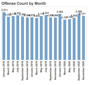 According to their count, the number of offenses in Portland has not seen any significant spike over the past year.