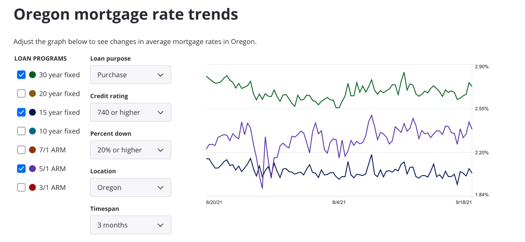 Bankrate.com shows current Oregon interest rates as of Thursday, September 23, 2021 as follows.