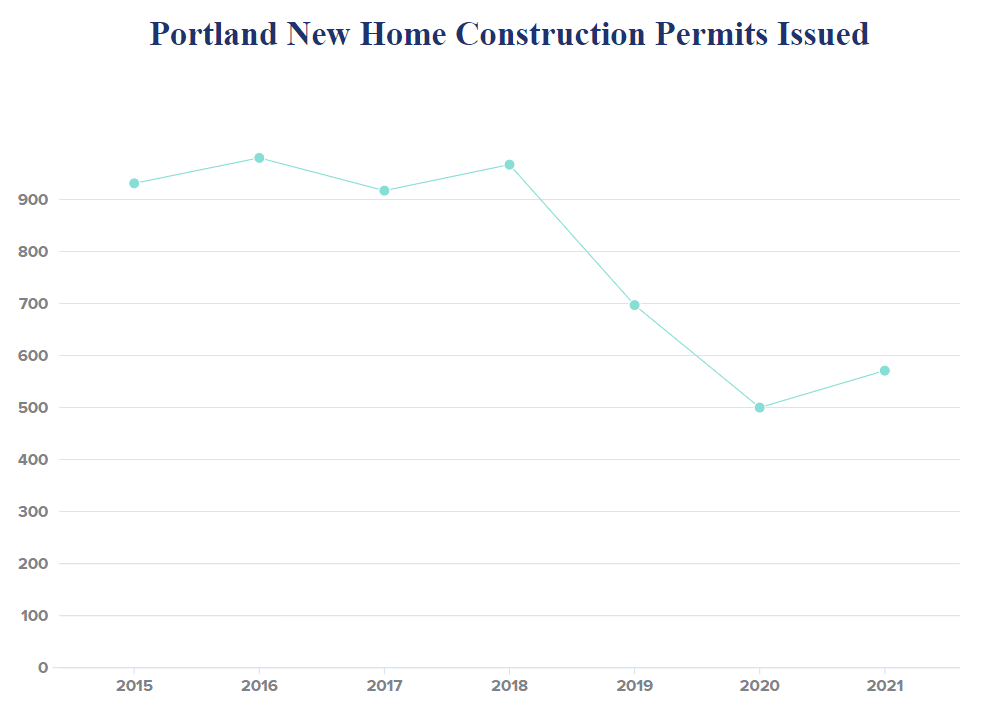 Let’s compare Portland’s 2021’s new home construction numbers to date with the past six years.