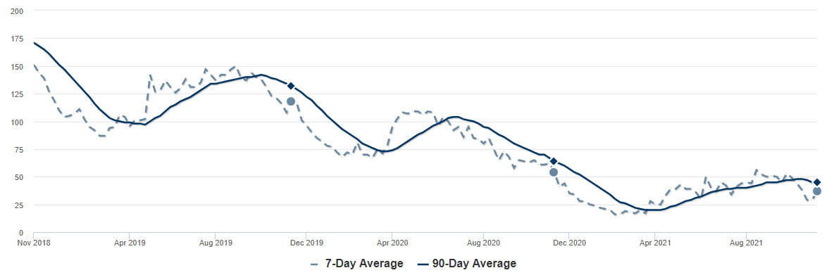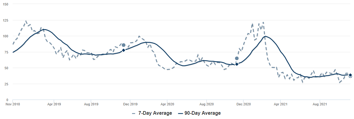 But while inventory has been increasing, time on market has stayed relatively flat, signifying the Tigard real estate market is staying hot through the fall season. Even normal seasonal inventory climbs are not slowing it down (but neither is it speeding up).