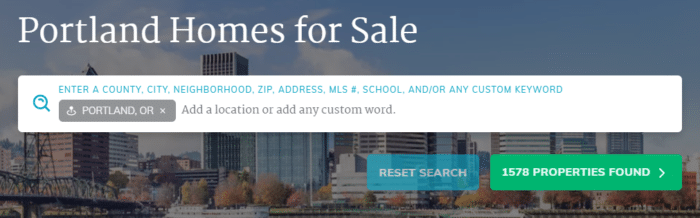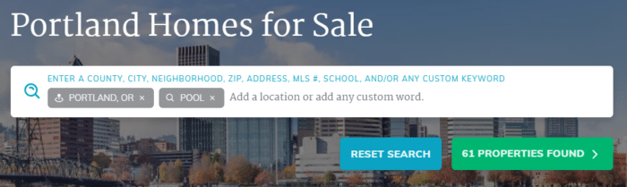We just went from 1578 properties for sale in Portland, down to 61 with a pool. Pool, however, is just one of a limitless number of examples. Type in any word you can think of, right in the search bar, that might be written about any property for sale, and suddenly you’ll get what you’re looking for.