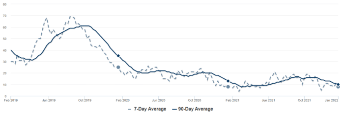 As is to be expected, due to the seasonal drop we always see this time of year and the COVID pandemic still holding sway, inventory is down.