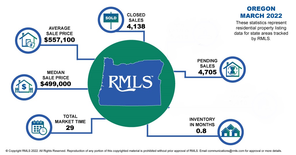 Those 81,133 home buyer showings in Oregon RMLS listed homes in March 2022 caused 4,705 of those same homes to go pending.