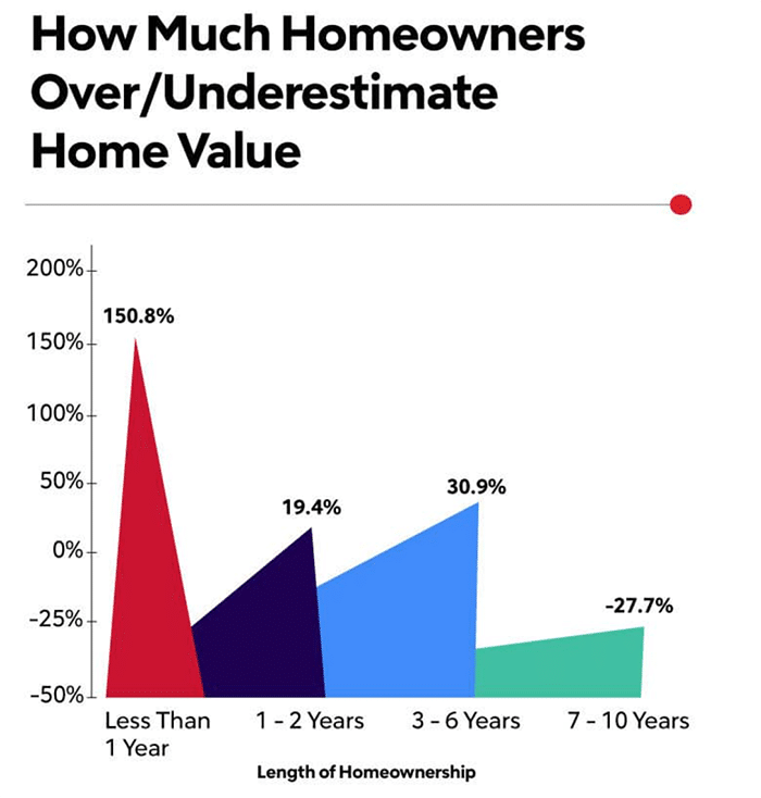 Homeowners Overestimate Home Value as much as 150%