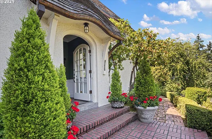The types of plants and trees used will depend on where the home is. For example, Portland has a temperate climate with mild winters and summers, while England has a more moderate climate and distinct seasons. Portland is also wetter, allowing for species that tolerate wetness longer. The different weather allows Portland homes to show off a broader range of plant species that can’t grow in England. The fall colors also tend to be more vibrant in Portland.