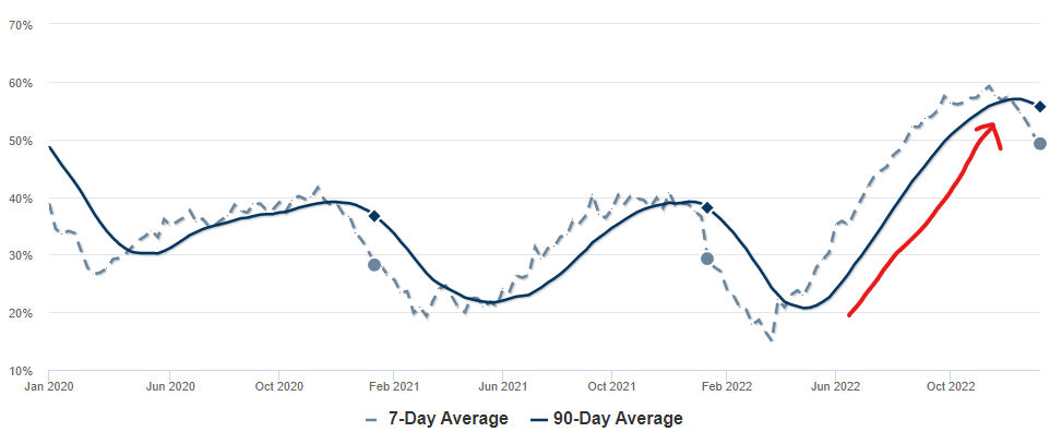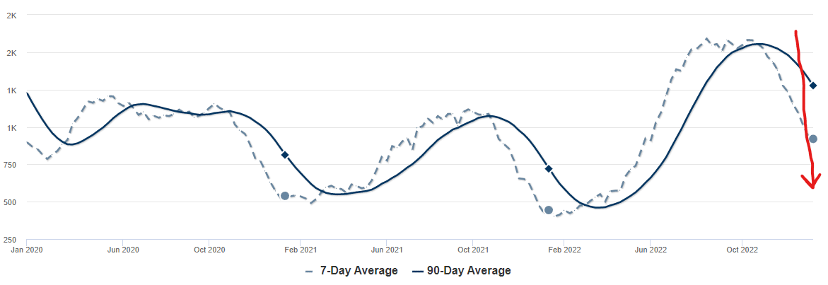 This is a recent trend reversal. Numbers from Fidelity National Title up to Jan. 13th 2023.