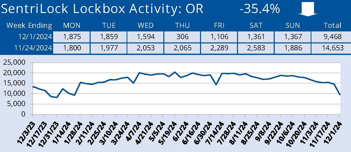 The above report is a snapshot of daily home buyer traffic in Oregon, as covered by RMLS. In Oregon RMLS covers the entire Portland metro and most of the northern half of the state. The majority of the traffic captured in the chart above happens within the greater Portland metro area.
