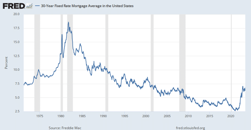 In Oct 2022, mortgage rates reached their highest point in over twenty years, with the average rate for a 30-year mortgage hitting 7.08 %, according to the Federal Reserve Bank of St. Louis’ research center.