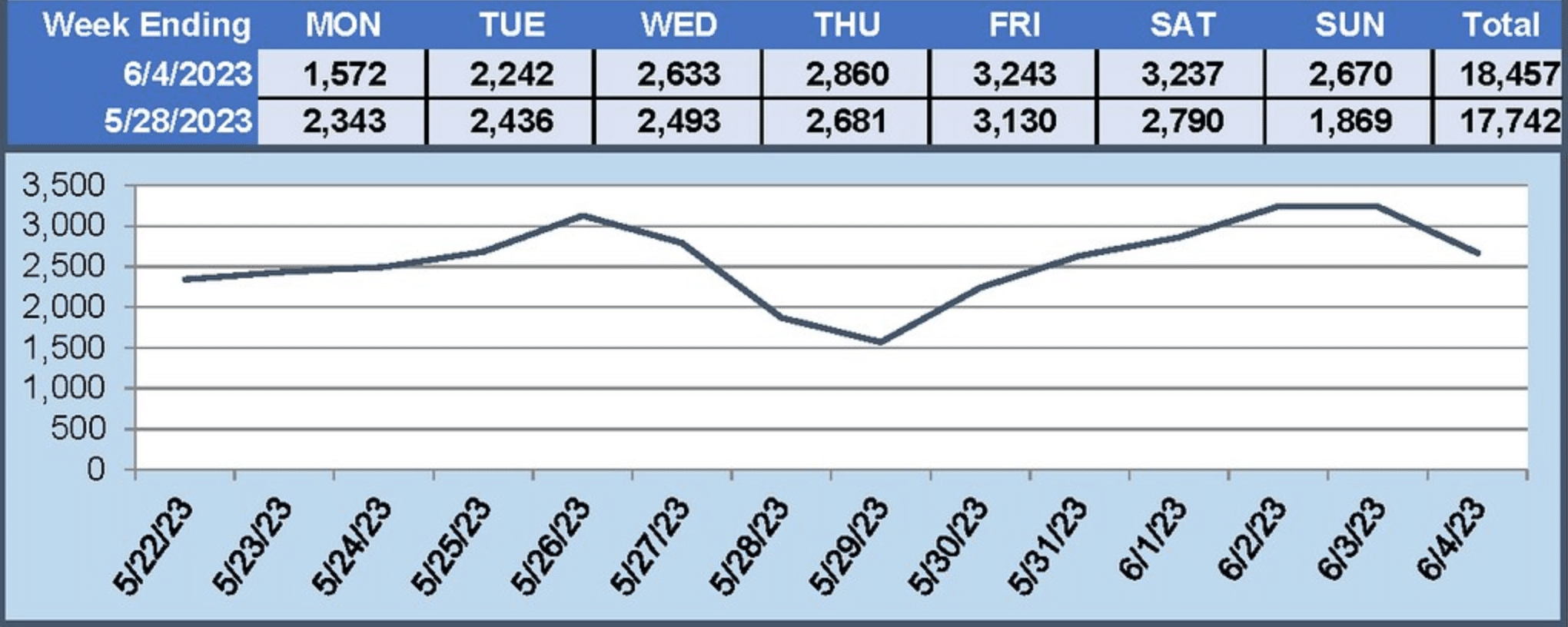Buyer traffic was predictably cool at the start of the year, as you can see from the numbers in our last January report. Though traffic remained warm through much of May, it became lukewarm by the end of the month and remains lukewarm in June despite a small increase at the beginning of the month.