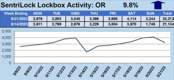 RMLS generates the buyer traffic reports shown above, which provide a snapshot of buyer demand from one week to the next. Here you see reports for two weeks in May where buyer traffic peaked, then the last two weeks were it has declined.