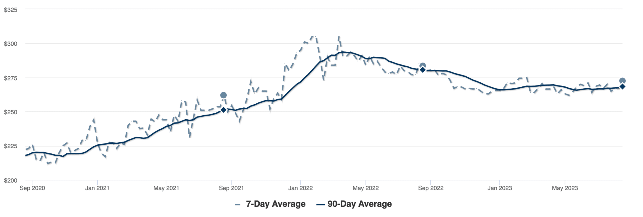 Gresham’s housing inventory reached its peak in early November of 2022, then dropped for several months before beginning to plateau in March of this year. Inventory began to rise again in June 2023 and is continuing to grow, signaling the fall season market shift that comes with diminished buyer demand: less competition and more affordable prices for buyers.