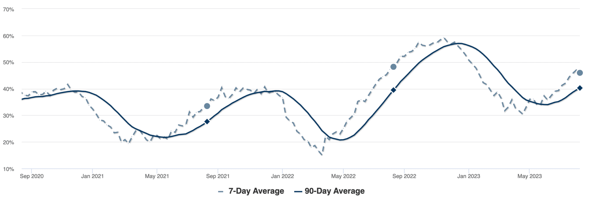 Pending sales also dropped from June to July at a rate similar to the previous month, and while recent years saw a slight increase in sales from July to August, based on seasonal market trends we can reasonably expect overall sales to continue to decline for the remainder of the year.