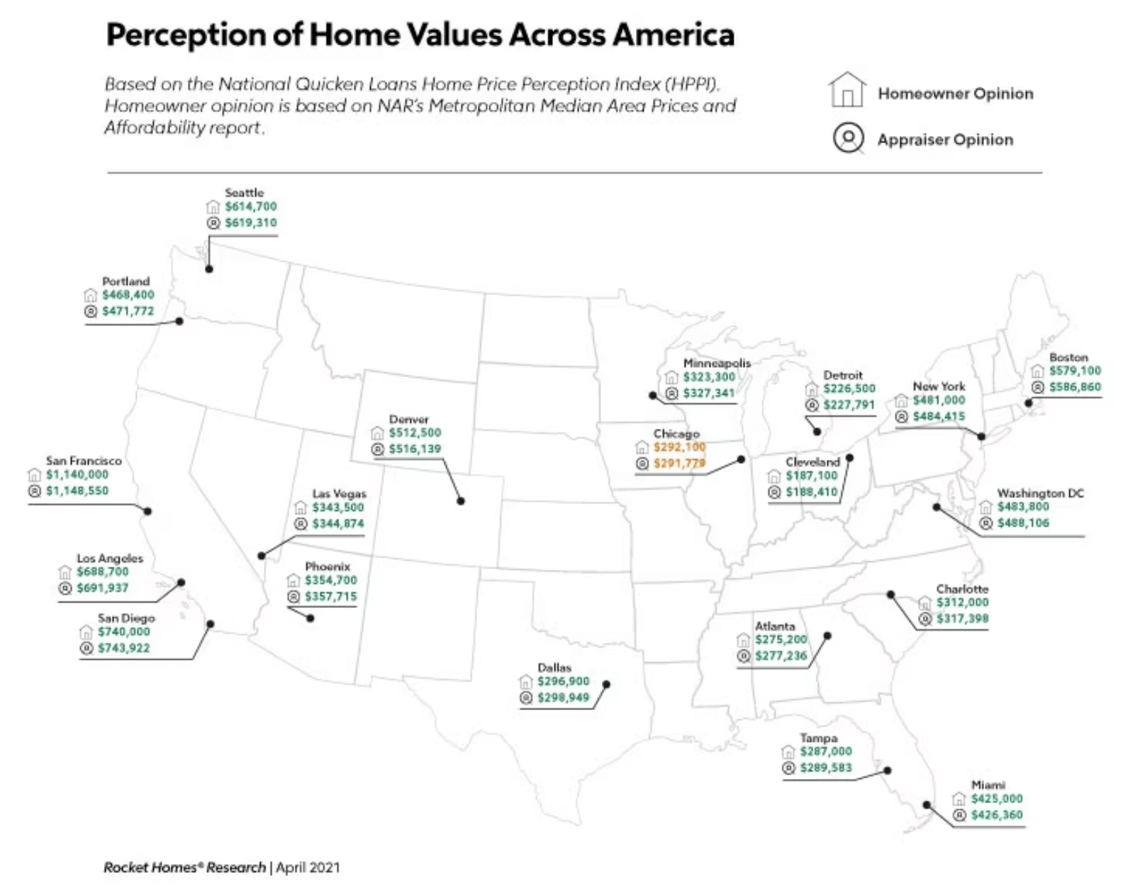 Percentages varied little across the country, with homeowner expectations 0.9% lower than appraisals in the West, 0.8% lower in the South, 0.92% lower in the Northeast and 1.01% lower in the Midwest.