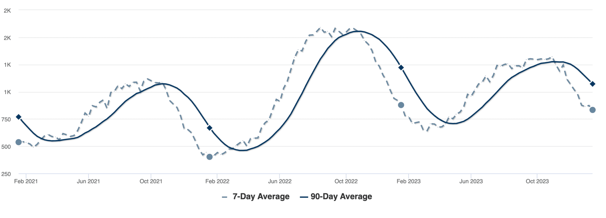 | 1,750 – 2,000 + | Frozen (last Oct. – Dec.) |