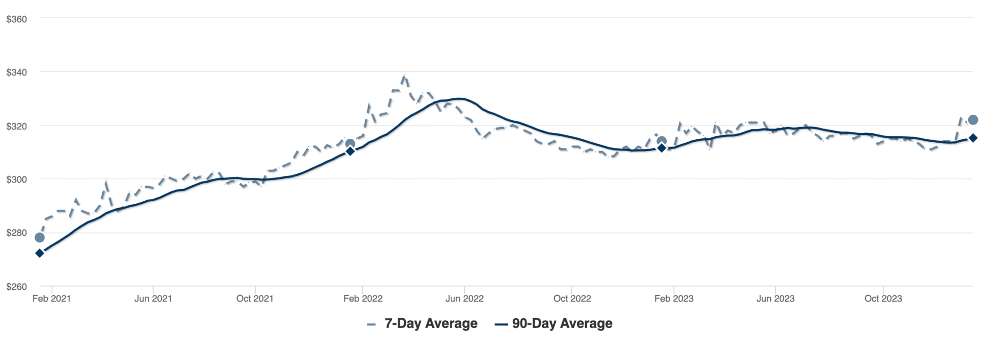 Pending home sales continued to decrease as well, but not as dramatically as in the previous two years, and last month’s sales slightly surpassed those in December of 2022. The holiday season contributes to a decline in sales each year, but as we progress through the early months of the year pending sales should gradually begin increasing.