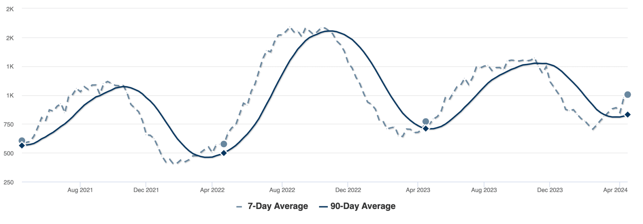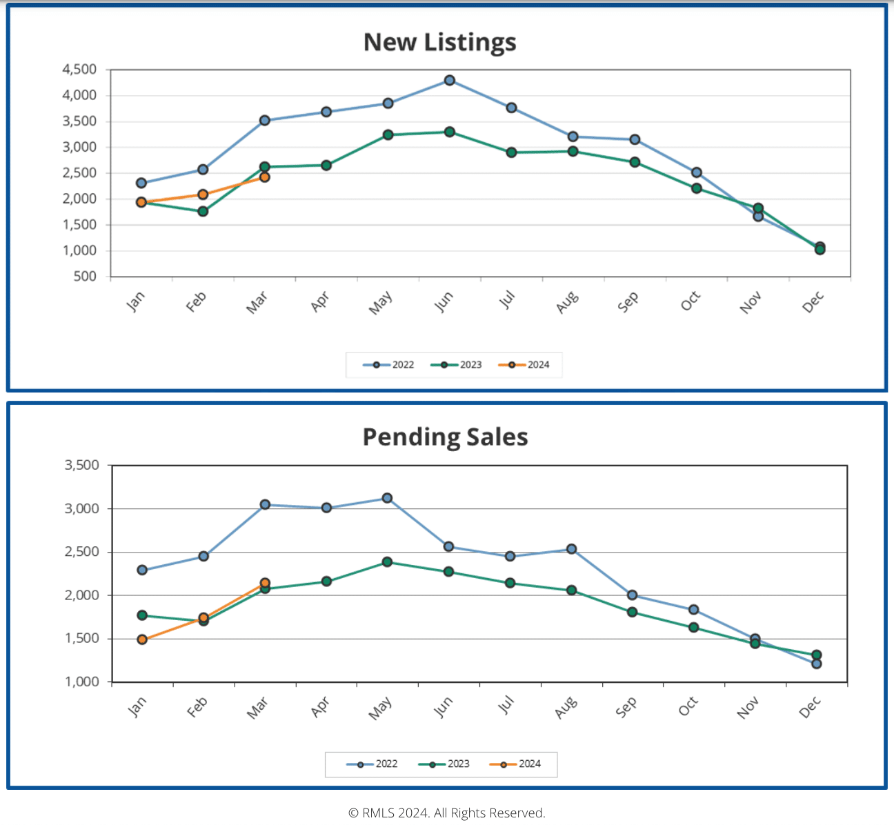 Pending sales grew from February to March at a rate nearly identical to the same time period in 2023, and ultimately rose slightly higher. We expect to see the greatest number of home sales for the year during the months of Spring, when buyers in our area are typically the most active. Based on the pattern of recent years, we can expect sales to continue to increase through the end of Spring.