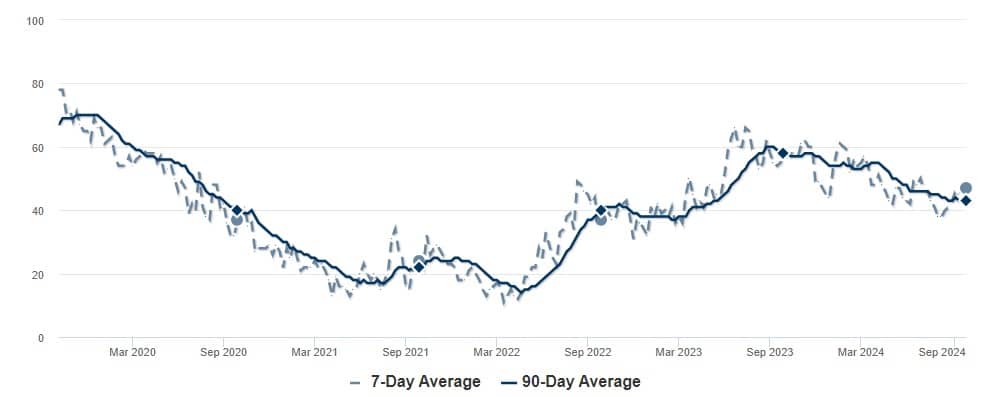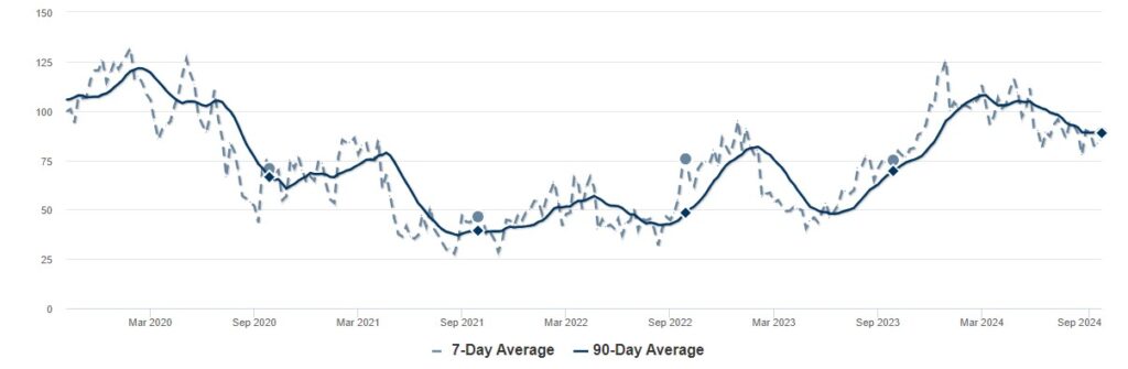 As of October 2024, homes in Canby are spending an average of 88 days on the market, slightly lower than Portland’s average of 94 days. This number is higher than the last three years.