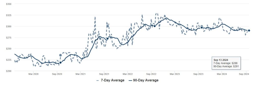 In our time in real estate, we have learned that the strongest indicator of real estate pricing is the price per square foot. In 2024, like years past, Canby’s price is slightly lower than the Portland average. As of October, the price average is $290, lower than Portland’s current average of $320.