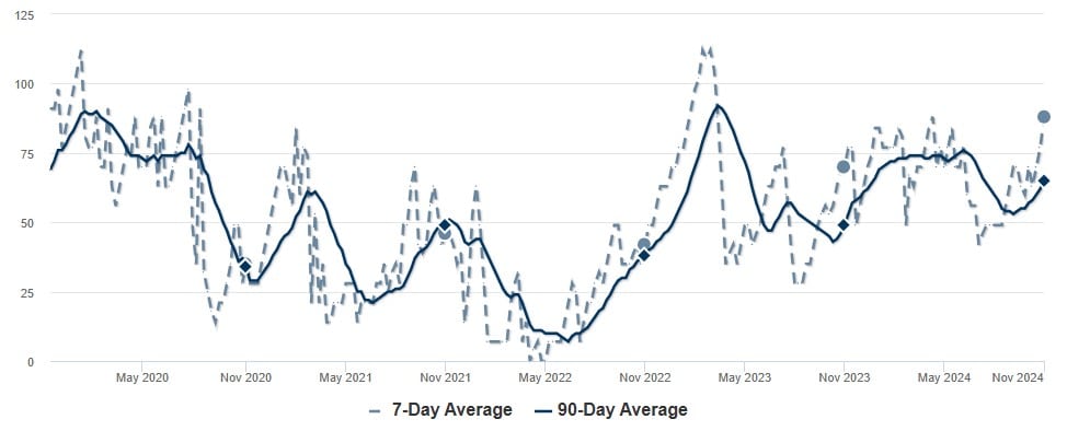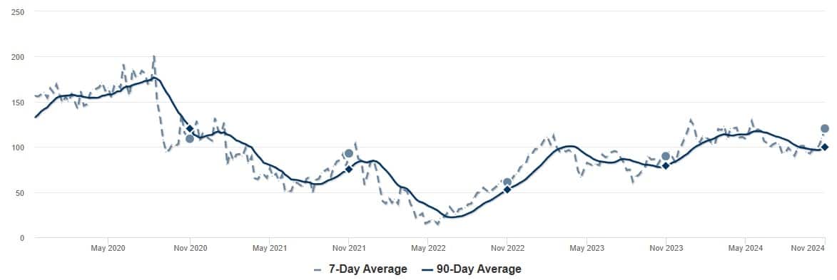 Portland is also seeing an increase overall, and though the increase is much sharper, it sits at 99 vs. Newberg’s 120 (a median of 67 vs 88). Extended time on the market in Newberg is due to higher inventory and less buyers this year than in most previous years (blame the interest rates, which also also poised to keep dropping, which will lead to a much stronger 2025).