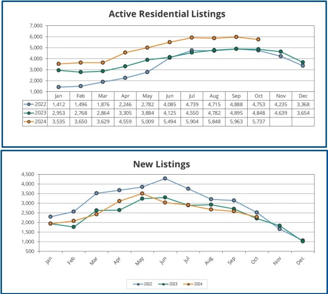 As of the latest RMLS Market Action September Report ending in October, new listings in Portland totaled 2,283, about a 12% decrease from 2,589 in September. The dip aligns with typical trends because sellers become more cautious in the colder months. The number of new listings is also in alignment with 2023.