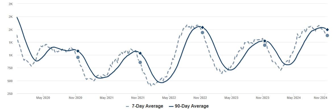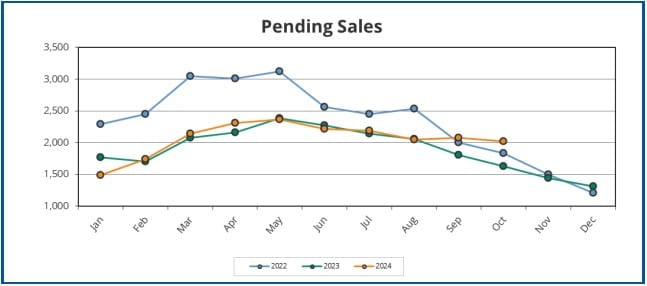 Even with the September rate reduction, current traffic is similar to that seen in 2023 and is expected to continue its typical decline, especially since interest rates have risen since September. The year isn’t over, but we have a short amount of time left before the major holidays bring everything to a halt. It isn’t clear if we will get lower rates again before the holidays arrive. Therefore, we predict seasonal trends holding.