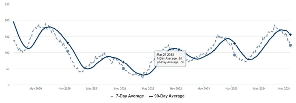 This time of year benefits buyers thanks to lower inventory. Looking forward, we can predict that the area’s general seasonal trends will hold, with inventory continuing to decline until the spring season.