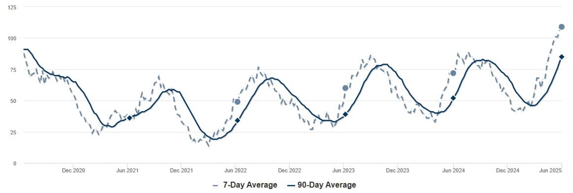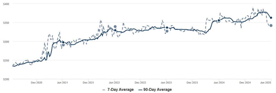 With over two decades of experience in Portland real estate, we have found that the most accurate representation of home values is provided by price-per-square-foot data. For West Linn, the price has dipped since early spring. As of June 6, 2025, the price per square foot was $342, down from $387 in March, with the largest drop occurring between early May and the current price. While a $35 drop is a significant short-term decline, it is still close to the $353 total time last year and remains higher than the prior four years. In fact, this year’s March total of #387 was the highest in five years. The current high inventory conditions may be a reason for the slightly lower home values, but by and large, the area shows signs of health and is a promising option for long-term investment. If and when interest rates lower, we should see a jump in those values.