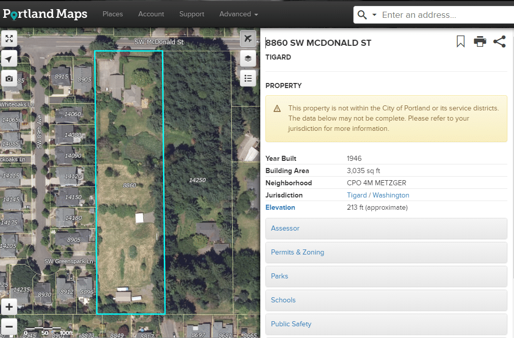 That’s the basic information about the site. You can click and drag the map to view other areas and scroll in and out on properties using your mouse’s scroll wheel. If you’re looking for a specific property, portlandmaps.com pairs well with PortlandHomesForSale.com, allowing you to get comprehensive information on any property in the Portland, OR, area.