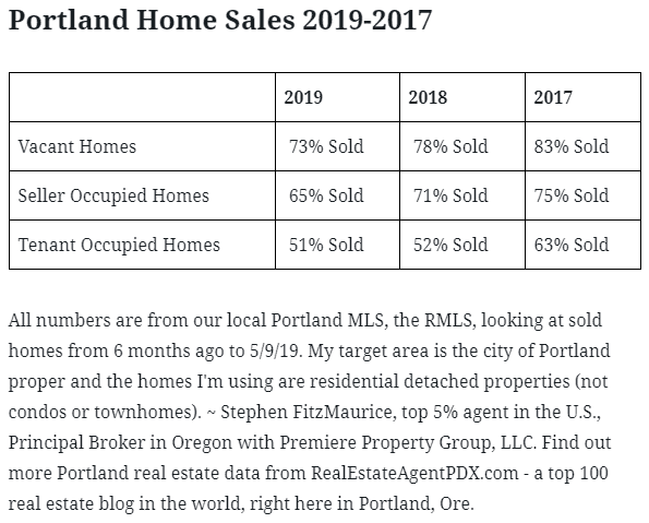 Any good real estate agent in Portland will tell you vacant homes sell best (staged or not), followed by seller occupied, and then in last place – tenant occupied homes. But the numbers are so drastic, especially from first to third place, it might surprise you. When you look at these numbers year over year […]